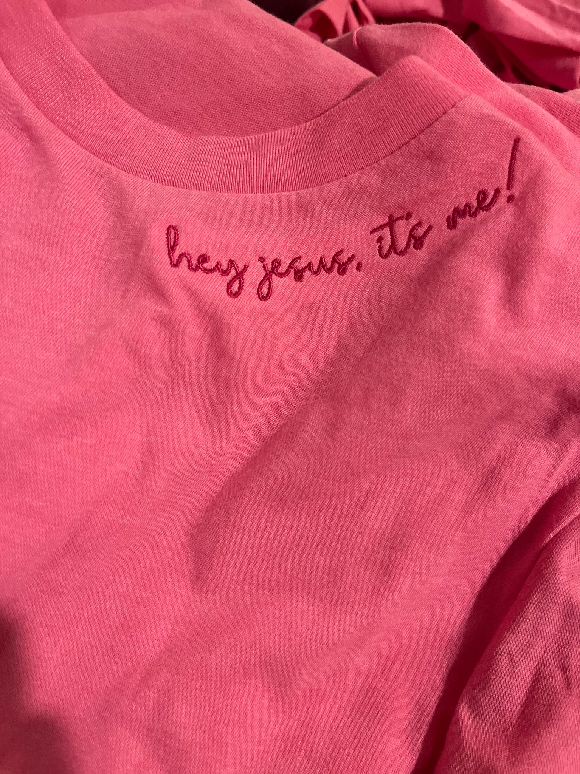 Pink Hey Jesus It's Me Embroidered shirt